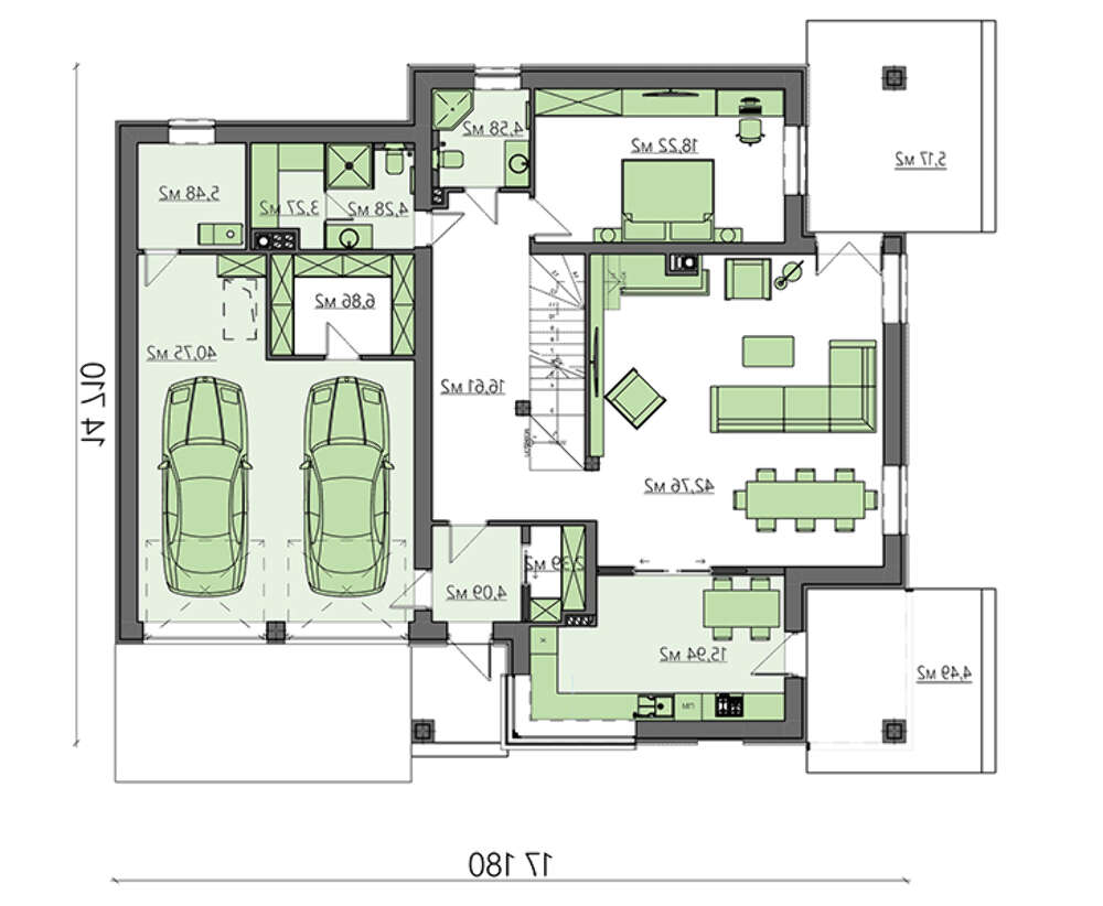 • 4M517 Проект современной комфортной усадьбы с баней на первом этаже