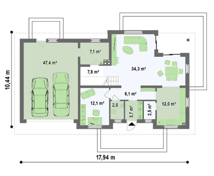 • 4M104 Проект стильного коттеджа с гаражом для двух автомобилей