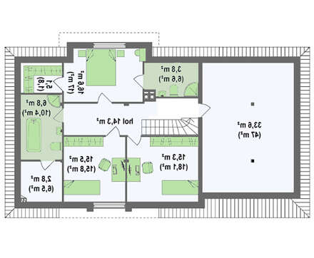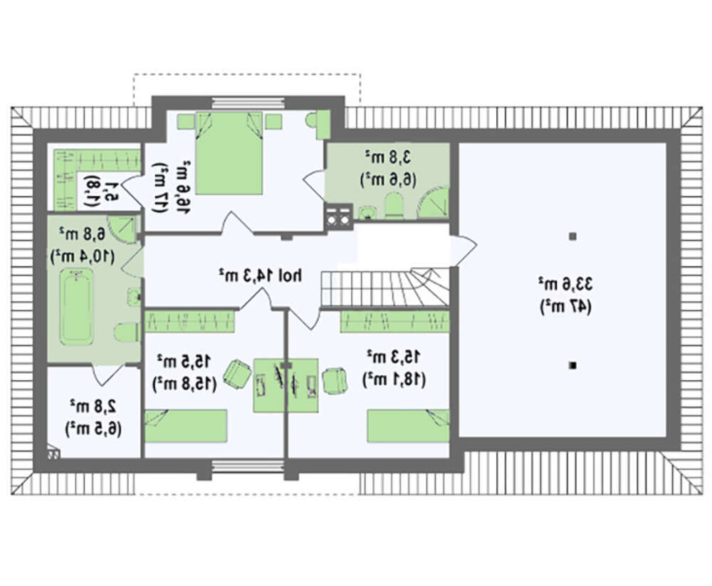 Итак, пункт первый – каждому отдельную комнату. Без проблем, добро пожаловать  в мансарду. Плюс ванная и дополнительная комната, в которой можно устроить прачечную. К тому же, в самой большой комнате предусмотрена отдельная гардеробная и собственная ванная комната. А как дополнительный бонус – чердачное помещение над гаражом. И здесь уже все зависит от вашей фантазии: будет ли это зона отдыха с домашним кинотеатром, собственный тренажерный зал или дополнительная жилая комната. Нужное – подчеркнуть.