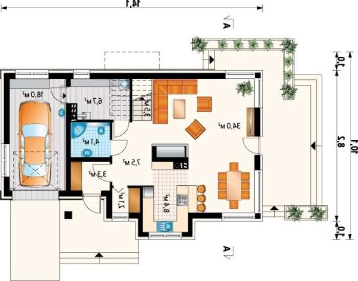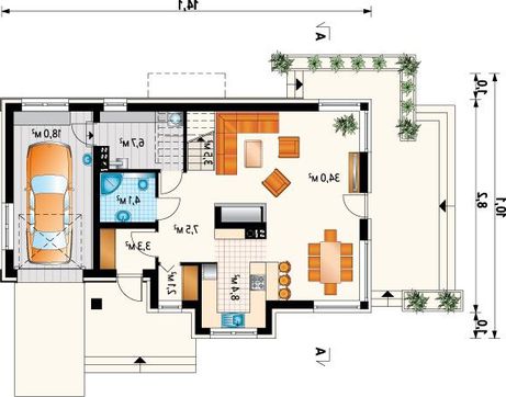 • 4M3093 Проект стильного коттеджа с гаражом и просторным балконом