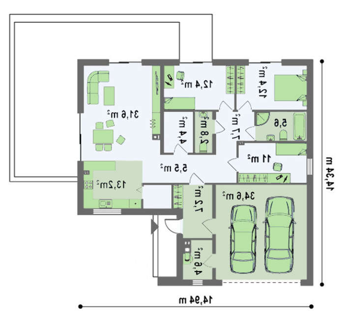 • 4M182a Проект стильного одноэтажного дома с большим гаражом для 2 авто