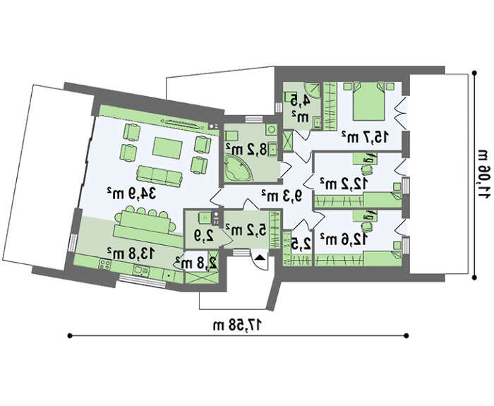 • 4M7086 Проект стильного одноэтажного дома с плоской крышей площадью 130 кв.м.