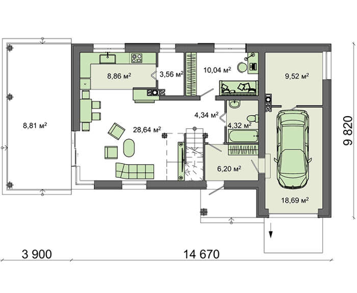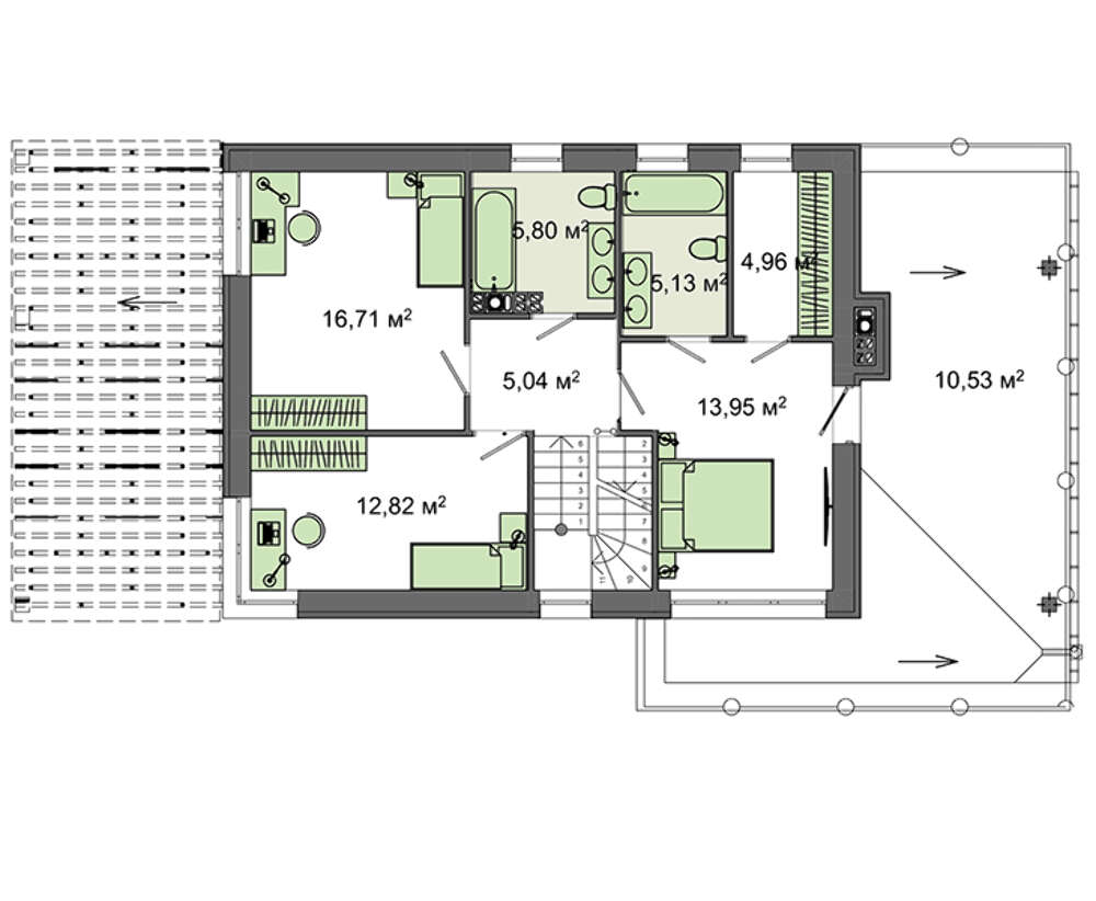 Проект стильного светлого красивого двухэтажного дома с гаражом и террасой 4M694f