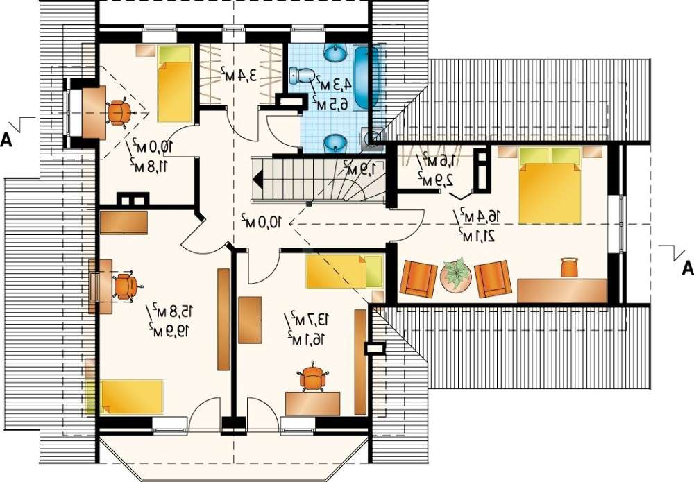 Стильный загородный коттедж с семью комнатами своим видом создает радость и поддерживает отличное настроение. Напоминающая солнце раскраска стен отлично вписывается в любой пейзаж и подобно небесному светилу наполняет его восторгом. Поддерживает настроение кирпичная кладка участков стен, словно орнамент покрывающая поверхность. Использование значительного количества дерева для изготовления ограждений балкона, дверных и оконных проемов указывает на направленность жилого дома в сторону естественной красоты и почитания натуральных материалов. Ландшафтная зелень будет наилучшим соседом для такой интересной постройки.