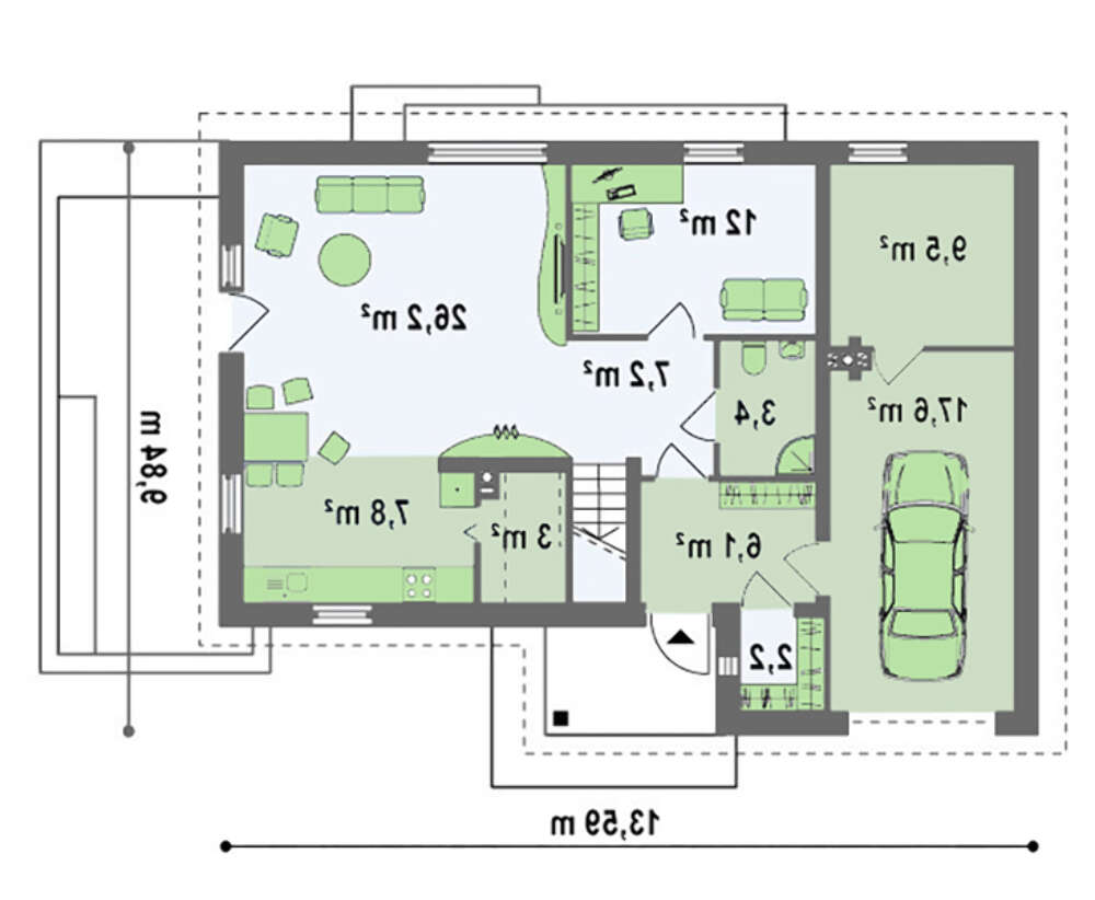 Проект содержит три раздела – АрхитектурныйКонструктивный и Инженерный: водоснабжение, отопление, вентиляция, канализация, электроснабжение (приобретается за дополнительную плату) + Пояснительная записка.