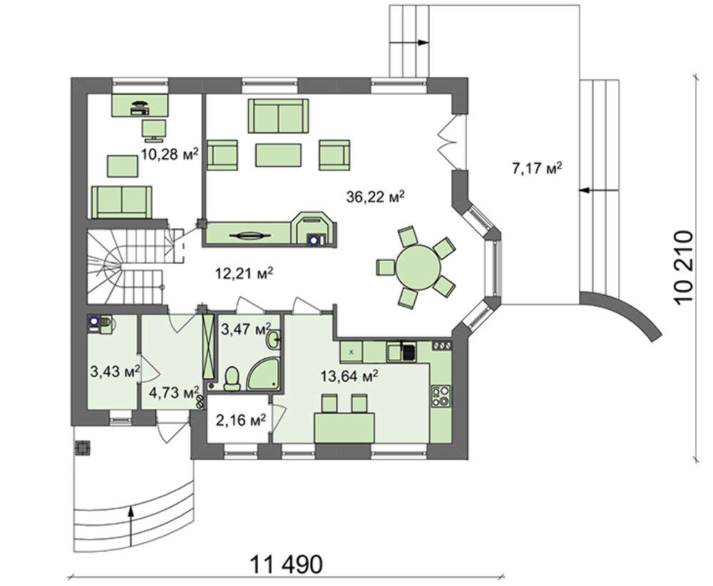 Проект содержит три раздела – АрхитектурныйКонструктивный и Инженерный: водоснабжение, отопление, вентиляция, канализация, электроснабжение (приобретается за дополнительную плату) + Пояснительная записка.