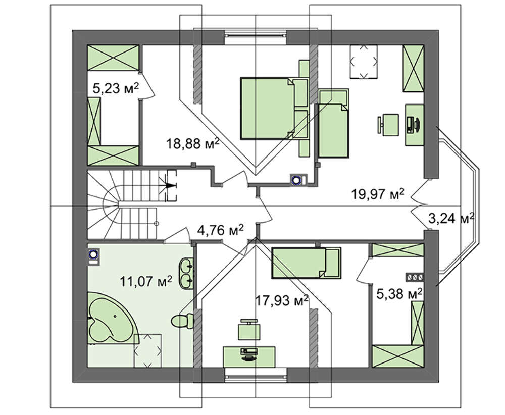 Проект традиционного дома площадью 180 кв.м. с мансардой и эркером 4M320