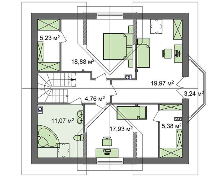 • 4M320 Проект традиционного дома площадью 180 кв.м. с мансардой и эркером