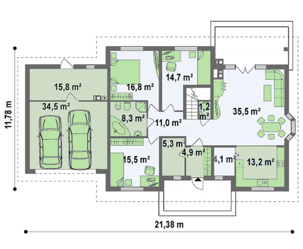 Проект содержит три раздела – АрхитектурныйКонструктивный и Инженерный: водоснабжение, отопление, вентиляция, канализация, электроснабжение (приобретается за дополнительную плату) + Пояснительная записка.