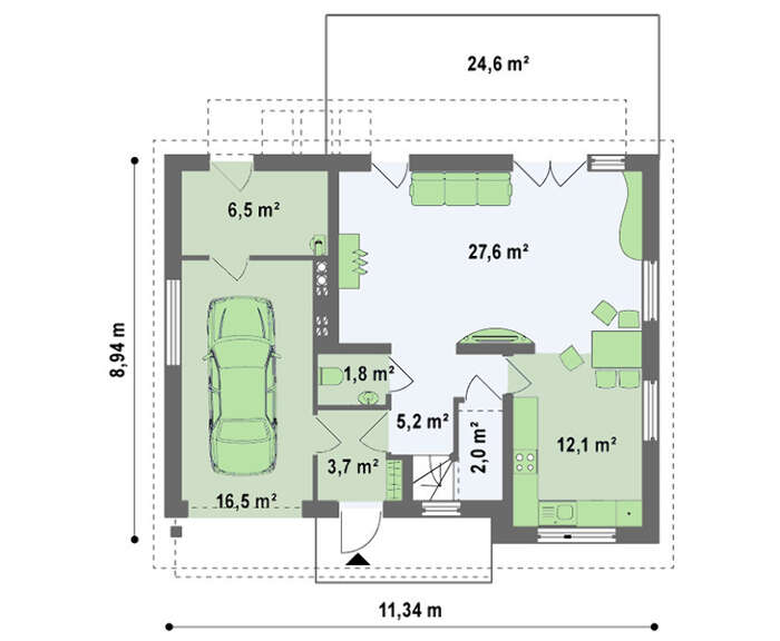 Проект традиционного дома со встроенным гаражом является неплохим вариантом семейного загородного жилья. Классический стиль дома прекрасно сочетается с эффектной наружной отделкой и дополняется практичным дизайном интерьера.