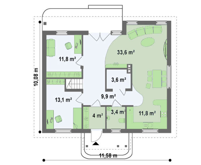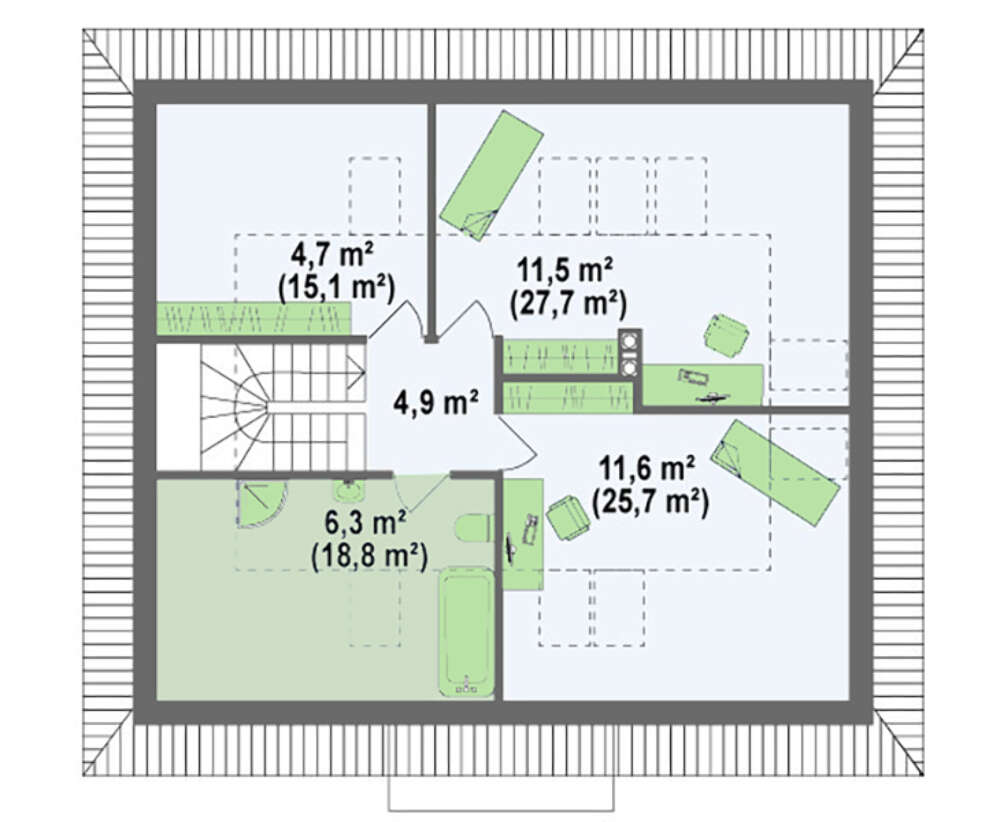 Проект содержит три раздела – АрхитектурныйКонструктивный и Инженерный: водоснабжение, отопление, вентиляция, канализация, электроснабжение (приобретается за дополнительную плату) + Пояснительная записка.