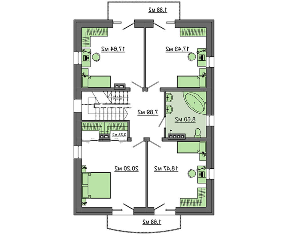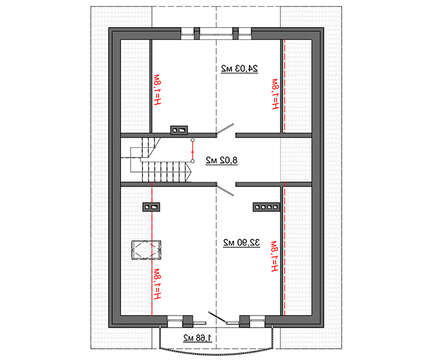 Проект содержит три раздела – Архитектурный, Конструктивный и Инженерный: водоснабжение, отопление, вентиляция, канализация, электроснабжение (приобретается за дополнительную плату) + Пояснительная записка.