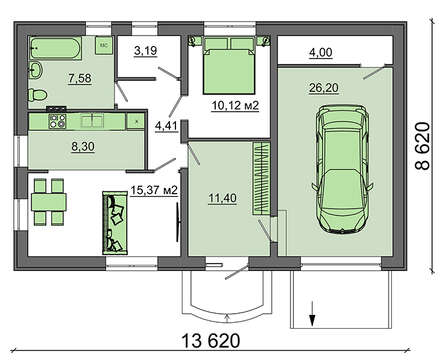 Проект содержит три раздела – Архитектурный, Конструктивный и Инженерный: водоснабжение, отопление, вентиляция, канализация, электроснабжение (приобретается за дополнительную плату) + Пояснительная записка.