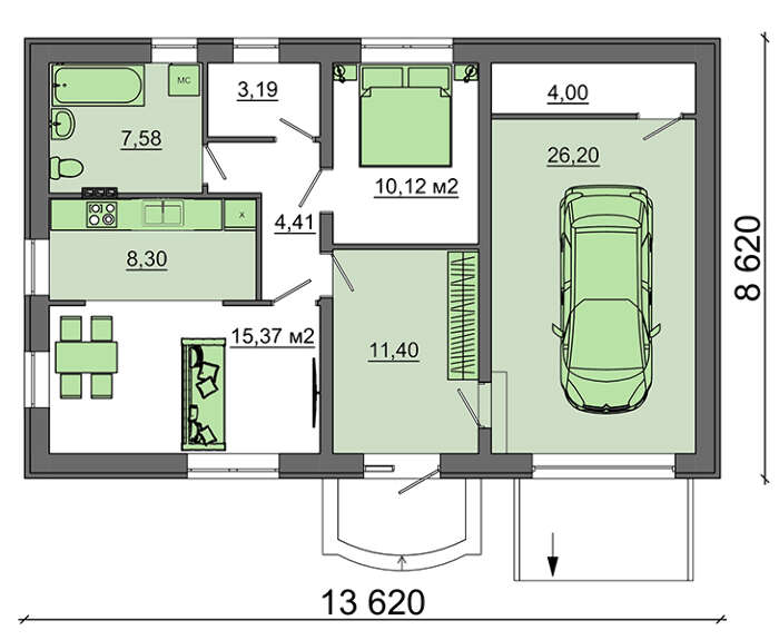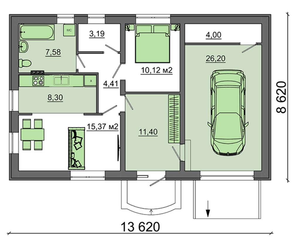 Проект содержит три раздела – Архитектурный, Конструктивный и Инженерный: водоснабжение, отопление, вентиляция, канализация, электроснабжение (приобретается за дополнительную плату) + Пояснительная записка.