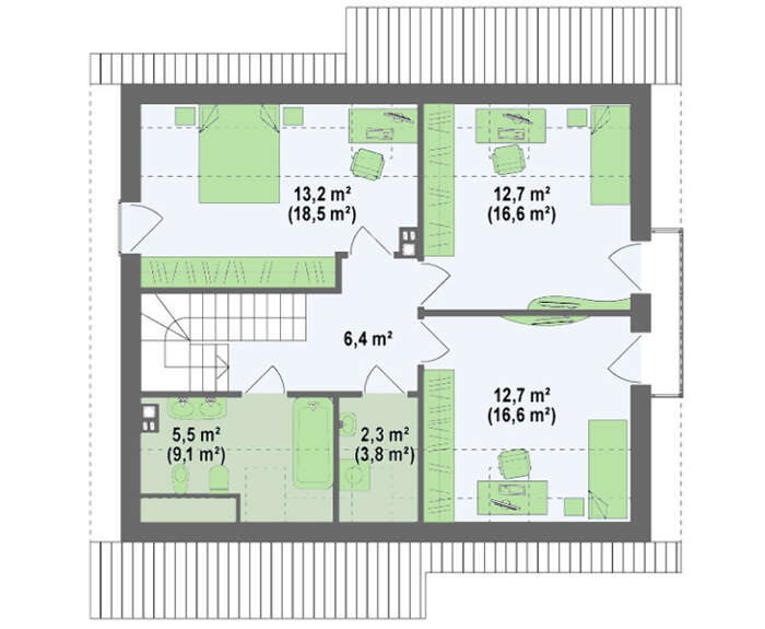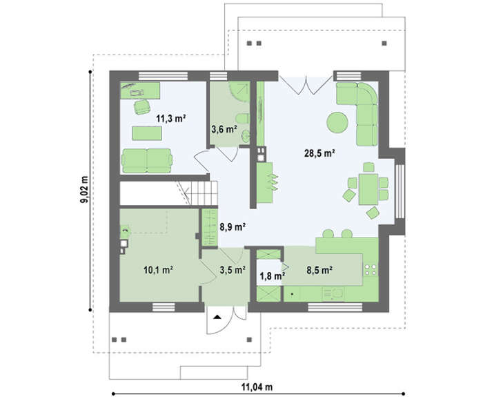 Проект содержит три раздела – АрхитектурныйКонструктивный и Инженерный: водоснабжение, отопление, вентиляция, канализация, электроснабжение (приобретается за дополнительную плату) + Пояснительная записка.