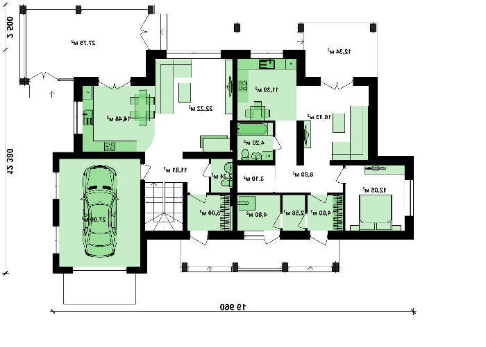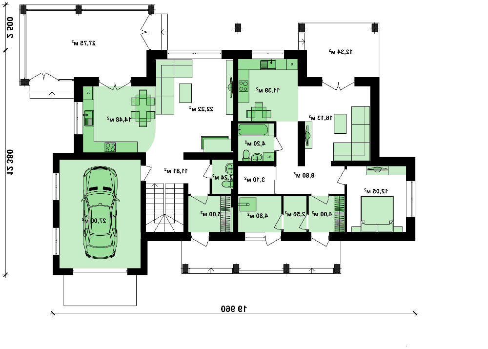 Проект содержит три раздела – Архитектурный, Конструктивный и Инженерный: водоснабжение, отопление, вентиляция, канализация, электроснабжение (приобретается за дополнительную плату) + Пояснительная записка.