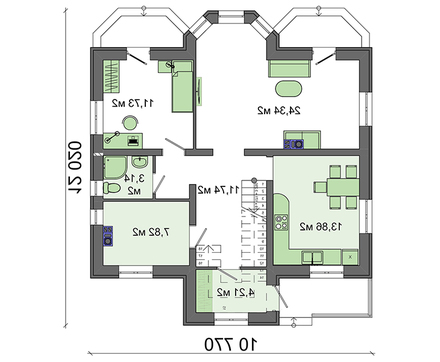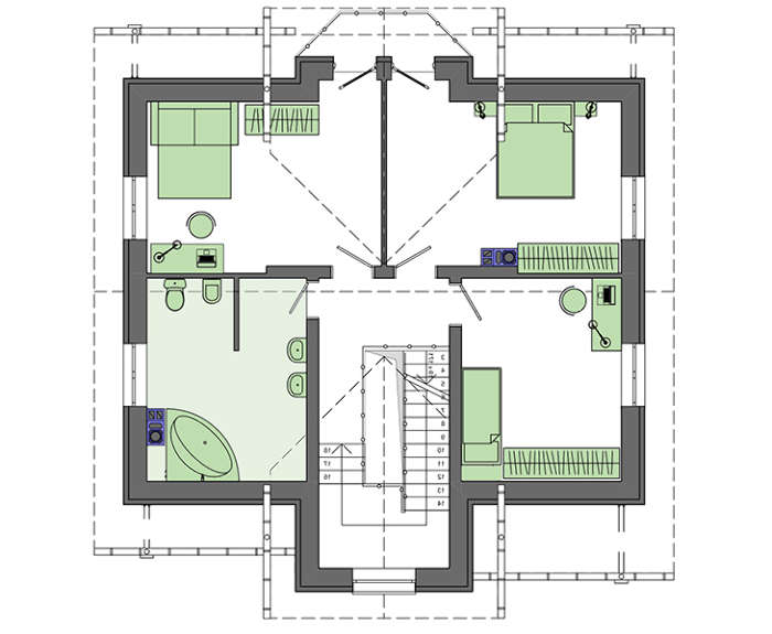 Проект содержит три раздела – АрхитектурныйКонструктивный и Инженерный: водоснабжение, отопление, вентиляция, канализация, электроснабжение (приобретается за дополнительную плату) + Пояснительная записка.