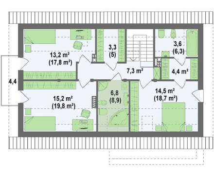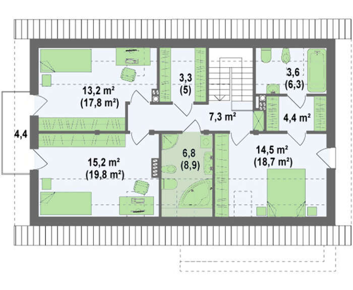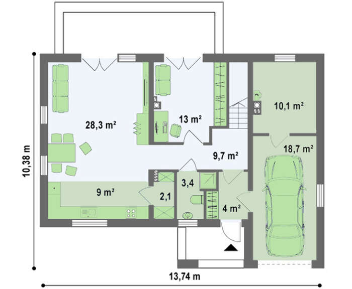 Проект содержит три раздела – АрхитектурныйКонструктивный и Инженерный: водоснабжение, отопление, вентиляция, канализация, электроснабжение (приобретается за дополнительную плату) + Пояснительная записка.