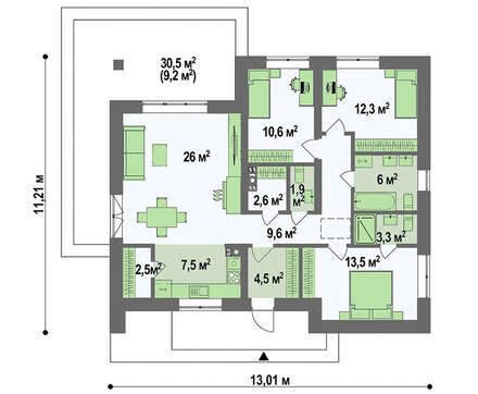 Проект уютного одноэтажного дома площадью 109 кв.м. 4M7026