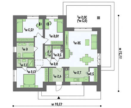 Проект уютного одноэтажного дома площадью 109 кв.м. 4M7026