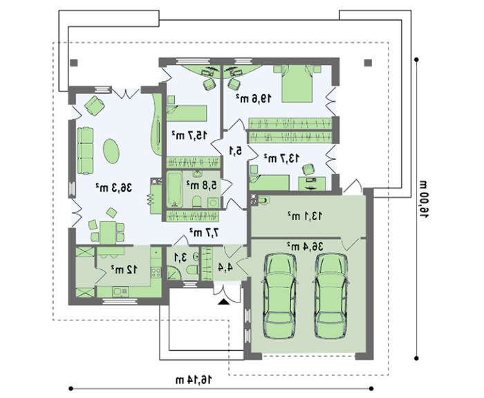 Дом 4М184 имеет в своем интерьере и отделке много деревянных, или сделанных под дерево, предметов. Это и светло коричневый пол, цвета клена или молодой сосны, и полки с книжками в гостиной, стулья, темно коричневый стол с балясиной, и, даже, раковина и подставка под ванную.  Все эти предметы и мебель делают дом  уютным, только подчеркивая при этом современность стиля. Дерево замечательно сочетается и с другими материалами. Ярким тому доказательством является небольшой столик на кухне, у которого стеклянная столешница умостилась на точенной деревянной ножке. В этом доме даже окна и двери, не белые, к чему многие привыкли, а светло коричневые, цвета дерева, что гармонично сочетается со светлым фасадом. Еще одной изюминкой дома является окно на кухне, расположенное перед рабочей зоной и мойкой. Такую особенность интерьера оценит любая хозяйка, ведь именно она больше всего времени проводит на кухне.