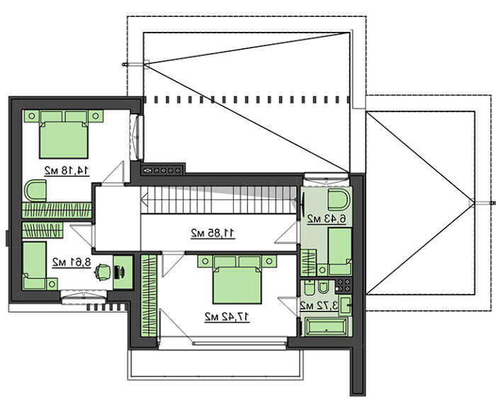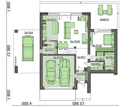 Проект содержит три раздела – Архитектурный, Конструктивный и Инженерный: водоснабжение, отопление, вентиляция, канализация, электроснабжение (приобретается за дополнительную плату) + Пояснительная записка.