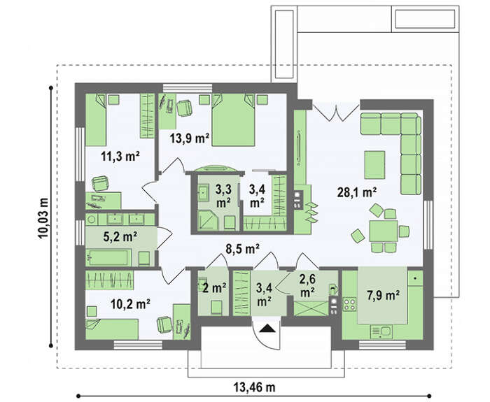 Проект загородного одноэтажного дома площадью 99 кв.м. 4M7028