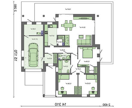 • 4M7013 Проект загородного жилого дома площадью 152 кв.м. с гаражом на 1 авто