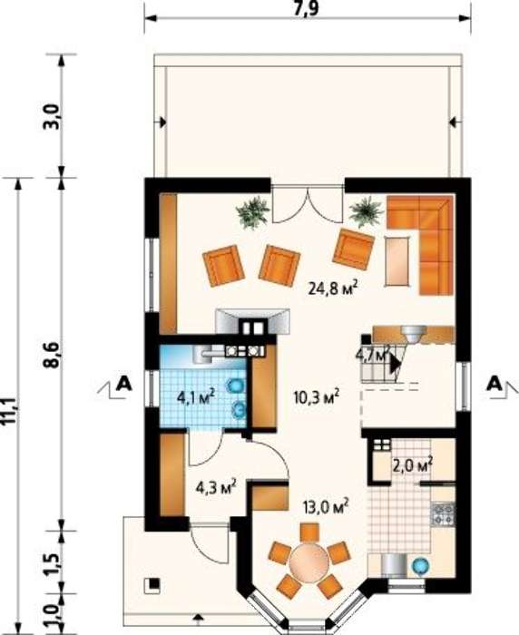 • 4M3070 Проект загородной усадьбы с четырьмя спальнями для небольшой семьи