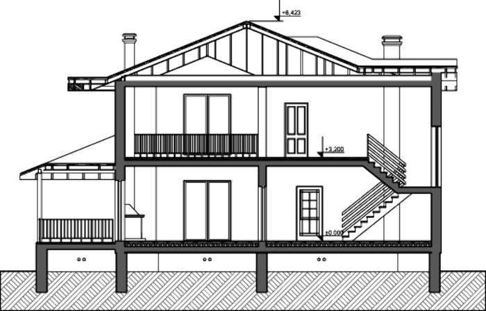 Проект содержит три раздела – Архитектурный, Конструктивный и Инженерный: водоснабжение, отопление, вентиляция, канализация, электроснабжение (приобретается за дополнительную плату) + Пояснительная записка.