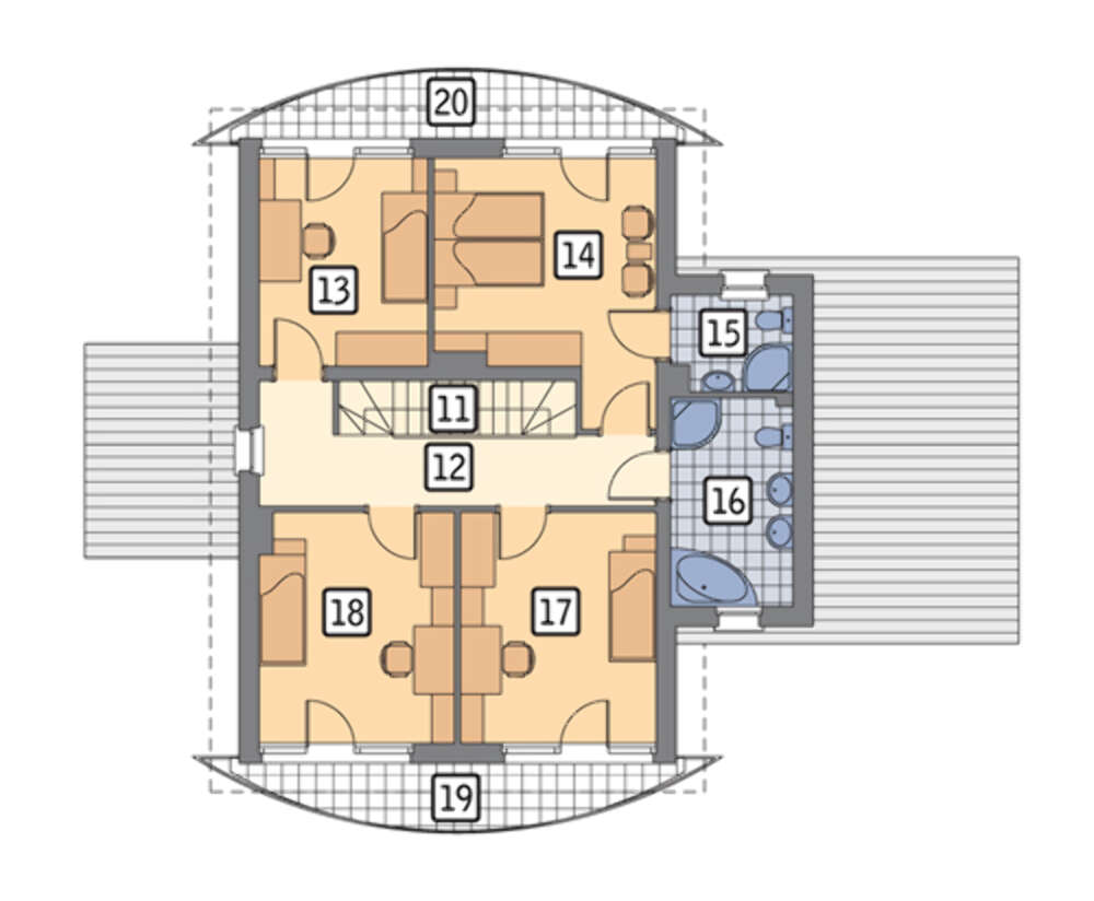 Второй этаж скрывает четыре просторные спальни, из каждой предусмотрены выходы на балкон. Преимущество апартаментов хозяина в личном санитарном помещении, которое наполняет жизнь комфортом.