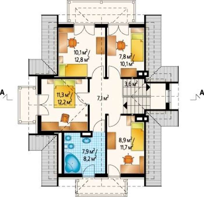 • 4M3408 Роскошный двухэтажный коттедж с балконами и кровлей из натуральной черепицы