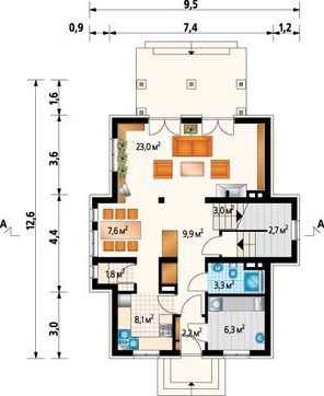 Проект содержит три раздела – АрхитектурныйКонструктивный и Инженерный: водоснабжение, отопление, вентиляция, канализация, электроснабжение (приобретается за дополнительную плату) + Пояснительная записка.
