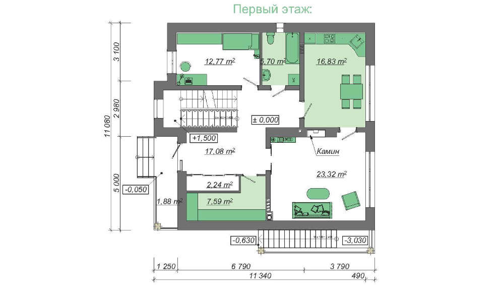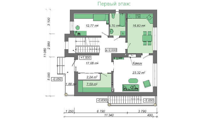 Цокольный этаж позволит хозяину полноценно фантазировать, строить планы, менять и в результате все их превратить в жизнь, выделить под каждую мечту свое помещение. Места достаточно для размещения комнат разного назначения: сауна, спортзал, бильярдная, пивной погребок, тренажерный зал.