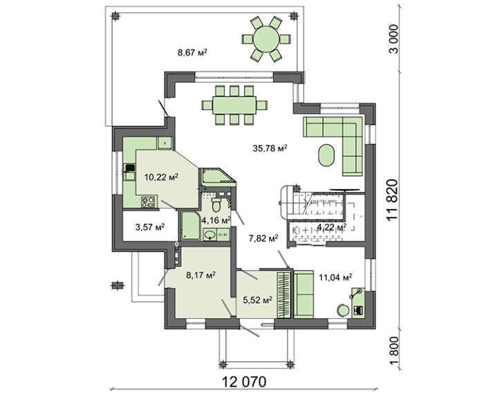 | Угол наклона кровли: | 22 ° |