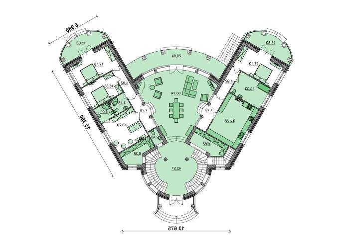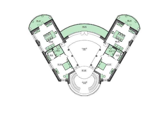 Проект содержит три раздела – Архитектурный, Конструктивный и Инженерный: водоснабжение, отопление, вентиляция, канализация, электроснабжение (приобретается за дополнительную плату) + Пояснительная записка.