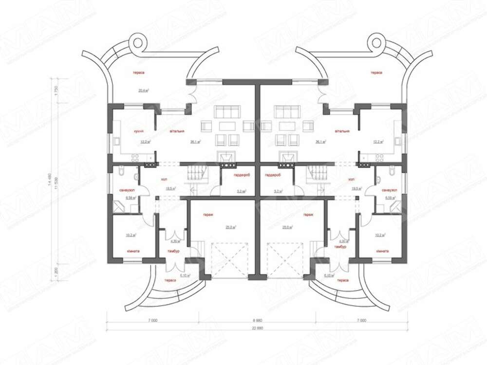 - Хорошо, Золушка, - отвечала Фея. Я исполню твое желание. У тебя будет светлый двухэтажный дом, с зеркально отражающими друг друга половинами для каждой семьи. На первом этаже дома - две террасы с окнами в твой цветущий сад. Шедевры своего рукоделия ты разместишь в гардеробной. А еще у тебя будет кухня, где ты сможешь колдовать над котелком, одновременно поглядывая в гостиную, где удобно расположатся твои гости.
