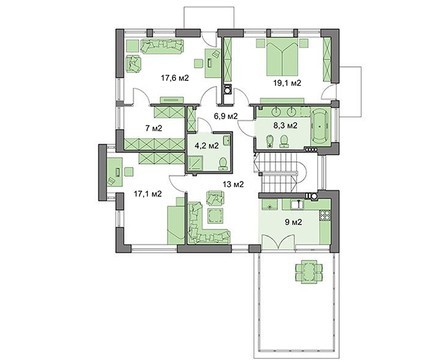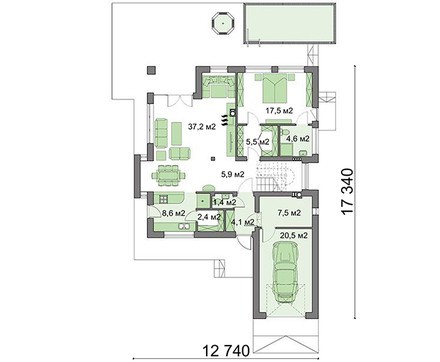 Проект содержит три раздела – Архитектурный, Конструктивный и Инженерный: водоснабжение, отопление, вентиляция, канализация, электроснабжение (приобретается за дополнительную плату) + Пояснительная записка.