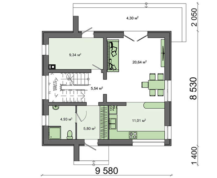 Проект содержит три раздела – Архитектурный, Конструктивный и Инженерный: водоснабжение, отопление, вентиляция, канализация, электроснабжение (приобретается за дополнительную плату) + Пояснительная записка.