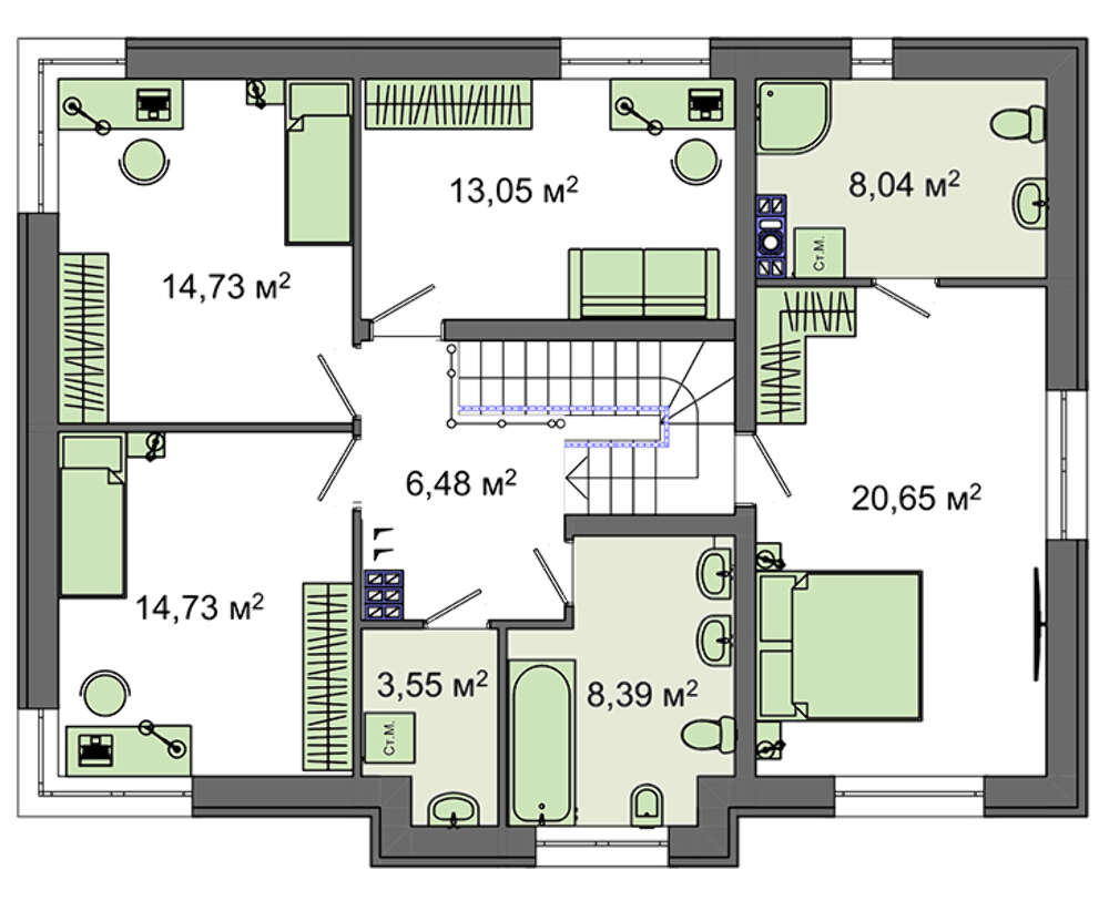• 4M1482 Симпатичный двухэтажный коттедж со встроенным гаражом