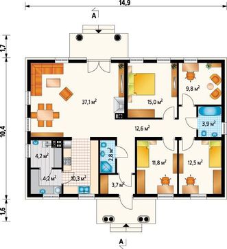 Симпатичный коттедж с четырехскатной кровлей 4M3484b
