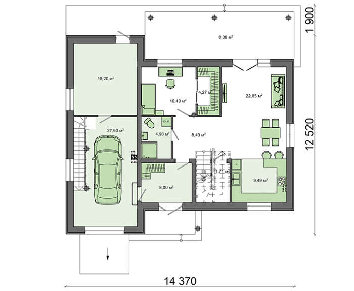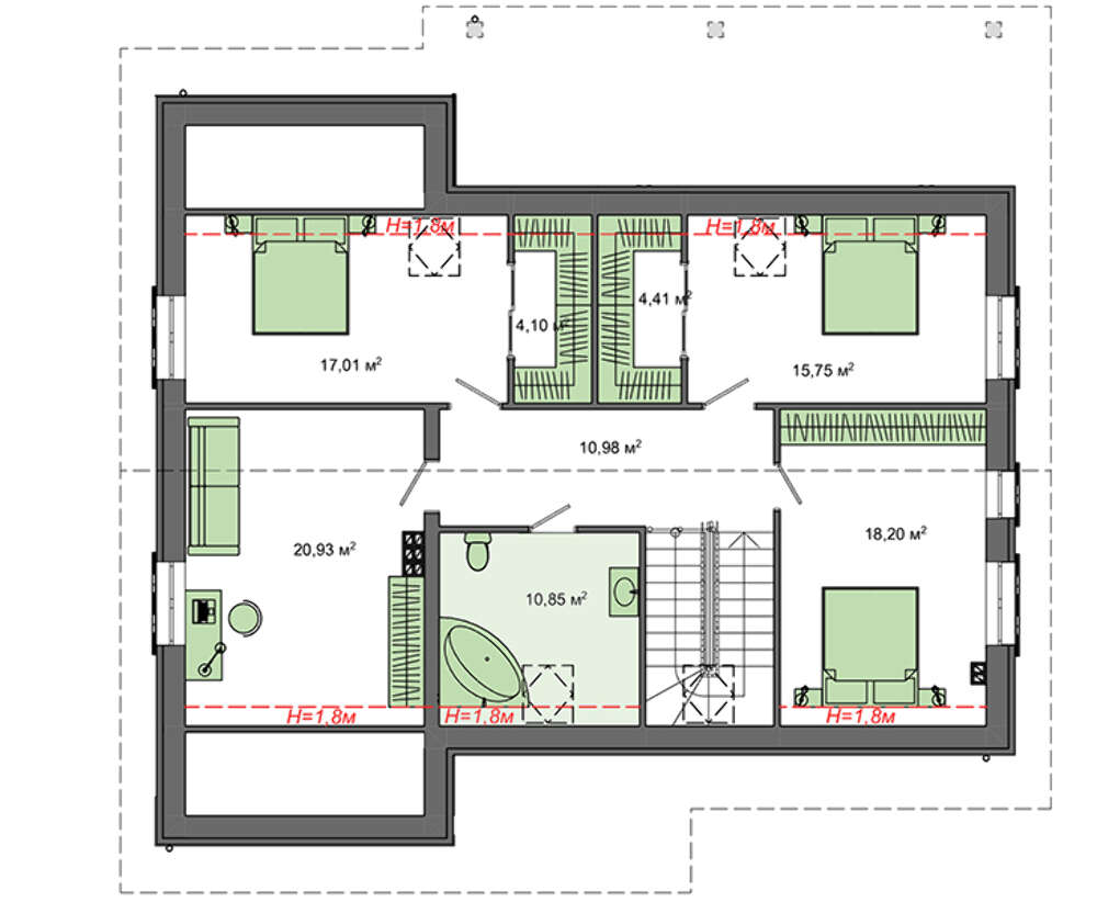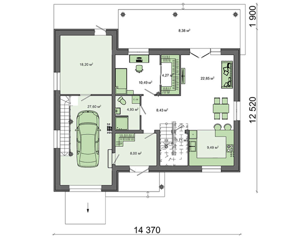 Проект содержит три раздела – Архитектурный, Конструктивный и Инженерный: водоснабжение, отопление, вентиляция, канализация, электроснабжение (приобретается за дополнительную плату) + Пояснительная записка.