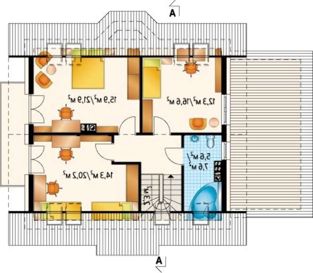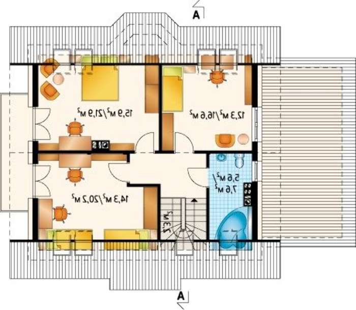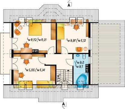 Значительная часть площади отведена под отдых домочадцев. Предусмотрено четыре комнаты, покои первого этажа по желанию владельцев можно использовать как кабинет или спальню.