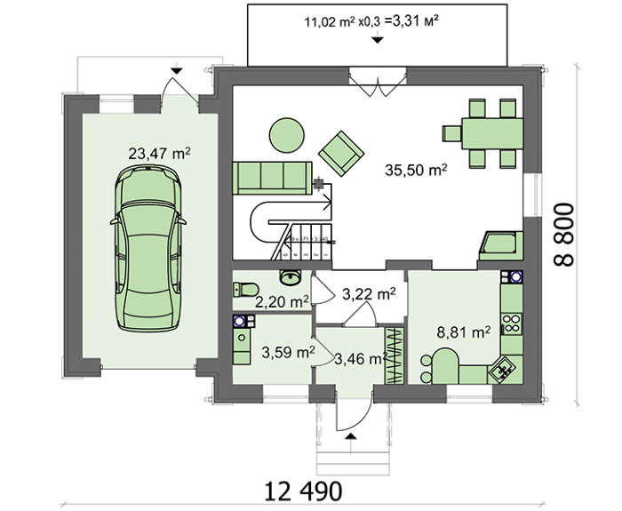 • 4M010G Симпатичный проект эко дома с гаражом