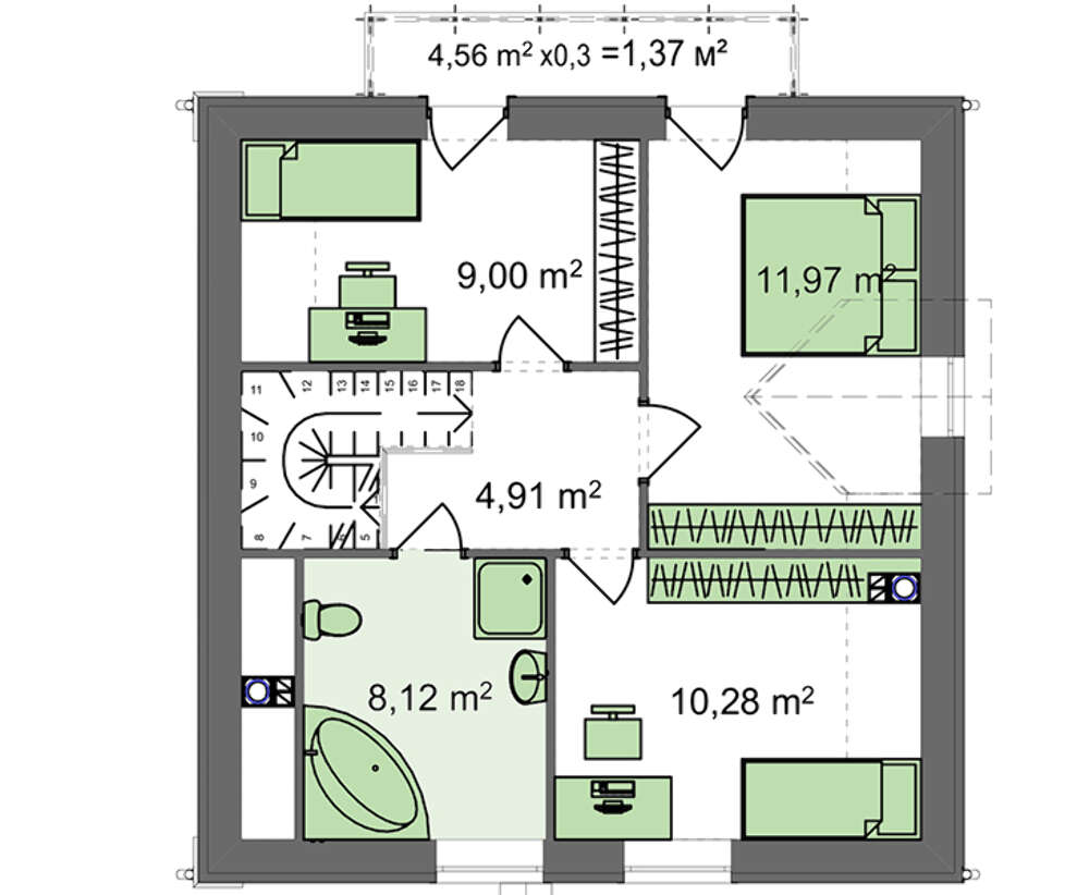 Площадь крыши:127.89 м2