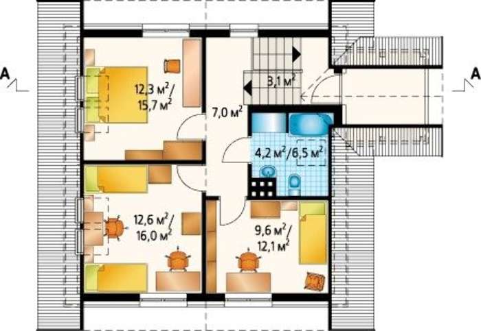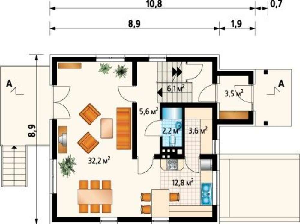 Проект содержит три раздела – АрхитектурныйКонструктивный и Инженерный: водоснабжение, отопление, вентиляция, канализация, электроснабжение (приобретается за дополнительную плату) + Пояснительная записка.