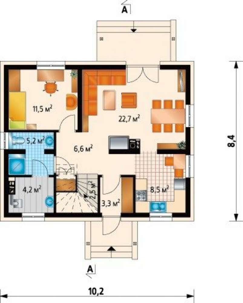 Проект содержит три раздела – АрхитектурныйКонструктивный и Инженерный: водоснабжение, отопление, вентиляция, канализация, электроснабжение (приобретается за дополнительную плату) + Пояснительная записка.