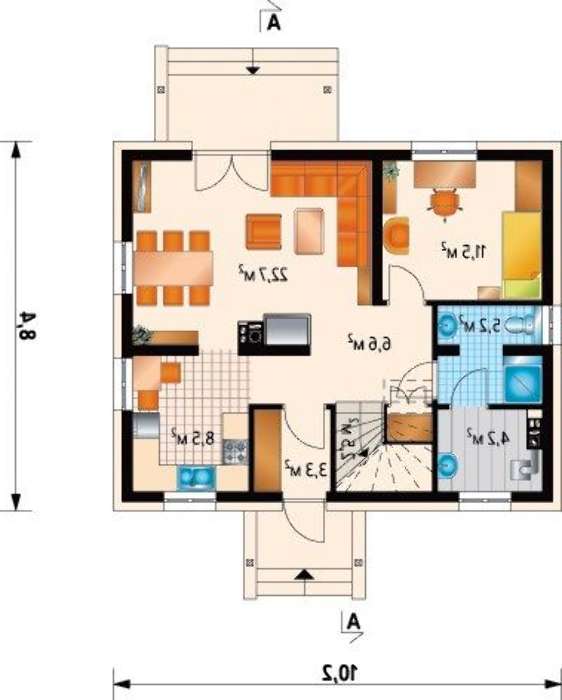 Проект содержит три раздела – АрхитектурныйКонструктивный и Инженерный: водоснабжение, отопление, вентиляция, канализация, электроснабжение (приобретается за дополнительную плату) + Пояснительная записка.