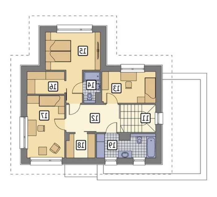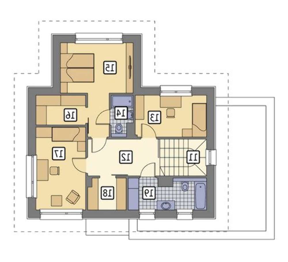 Внутренняя планировка делит пространство дома между этажами по назначению. Для нижнего уровня отведены помещения для дневного времяпрепровождения, верхний считается личной территорией членов семьи, здесь находятся спальни.