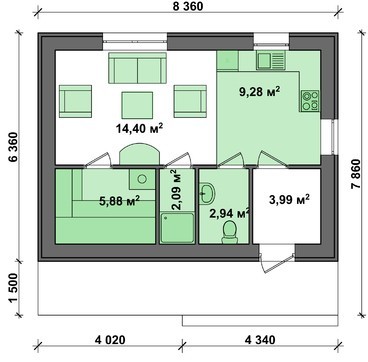 Проект содержит три раздела – Архитектурный, Конструктивный и Инженерный: водоснабжение, отопление, вентиляция, канализация, электроснабжение (приобретается за дополнительную плату) + Пояснительная записка.